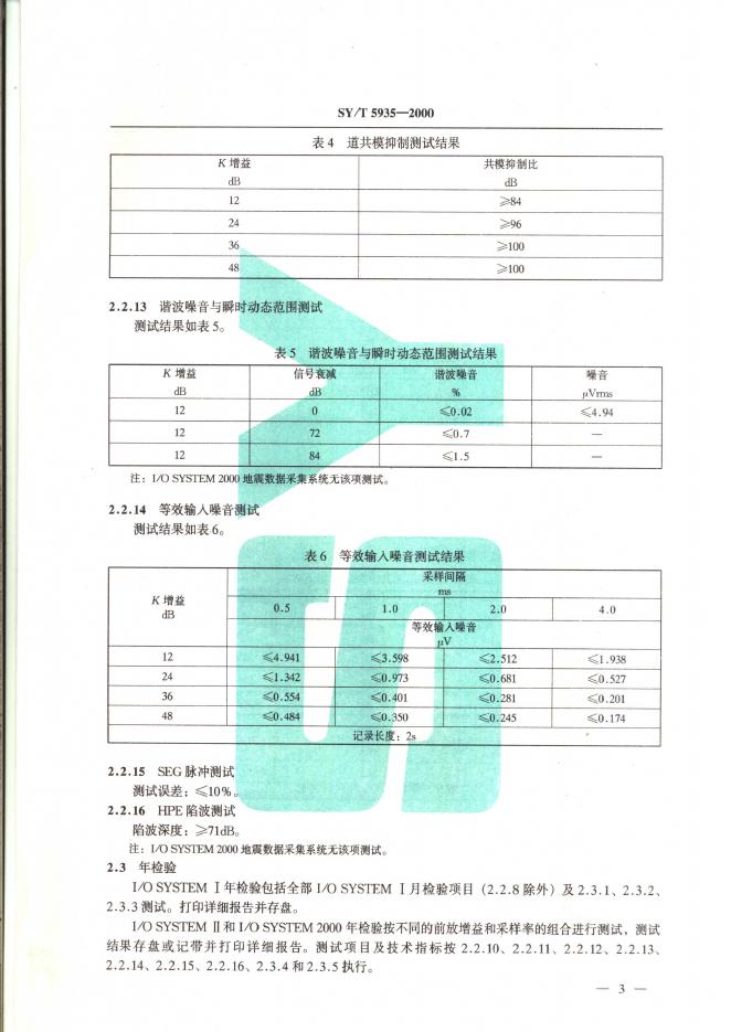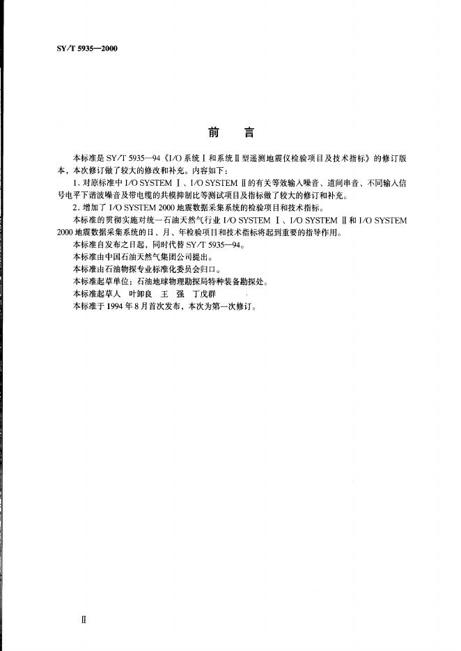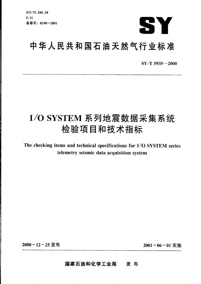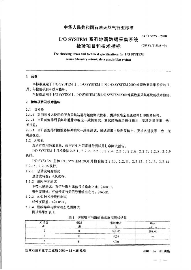SY/T 5935-1994 I/O系统Ⅰ和系统Ⅱ型遥测地震仪检验项目及技术指标
