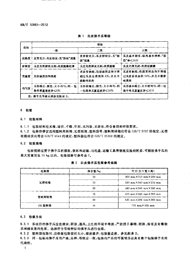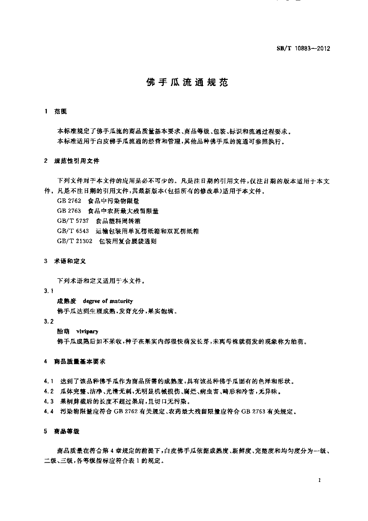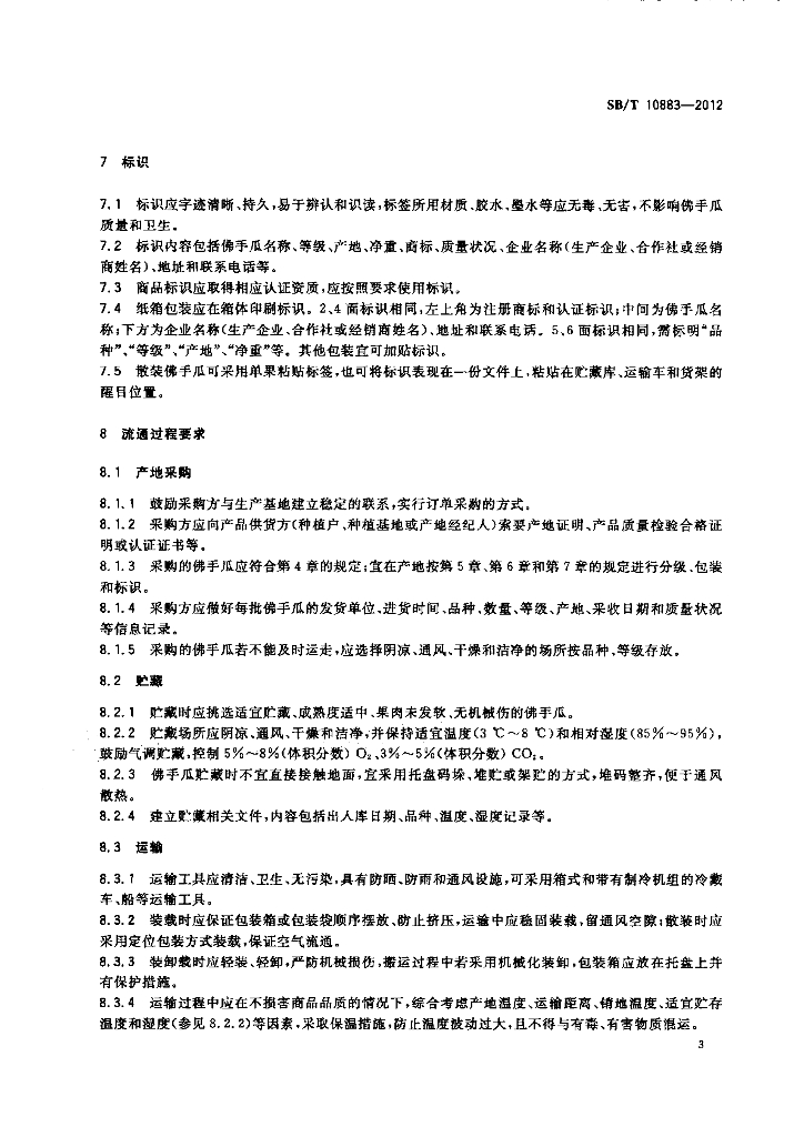 SB/T 10883-2012 佛手瓜流通规范