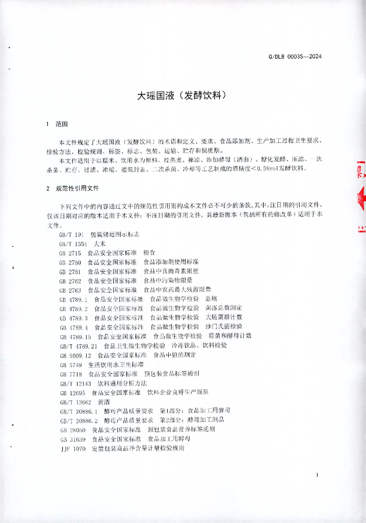 Q/DLB 0003S-2024 大瑶国液(发酵饮料)