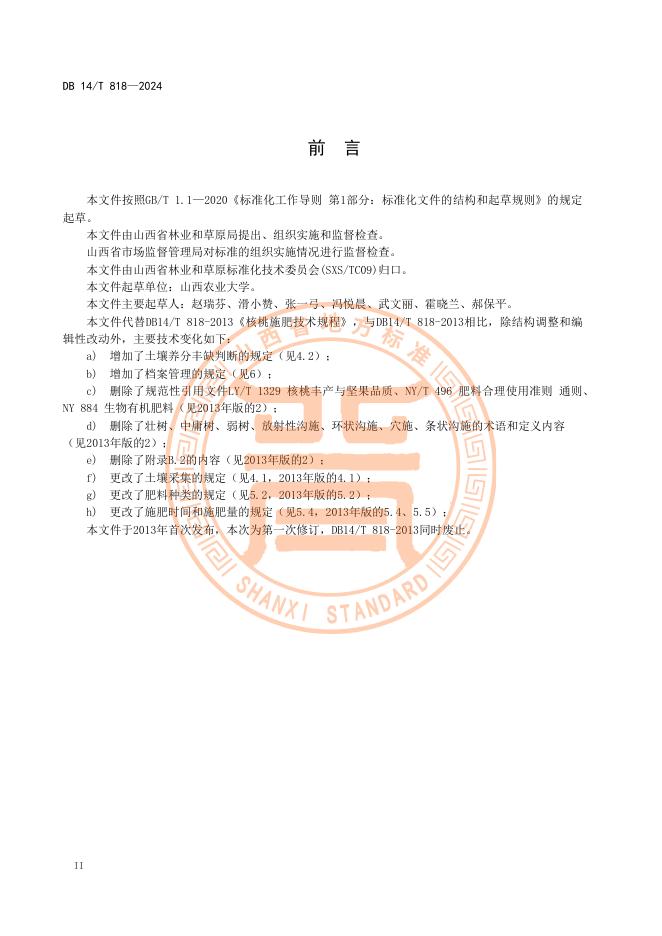 DB14/T 818-2024 核桃施肥技术规程