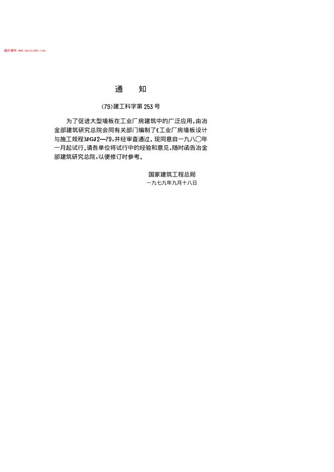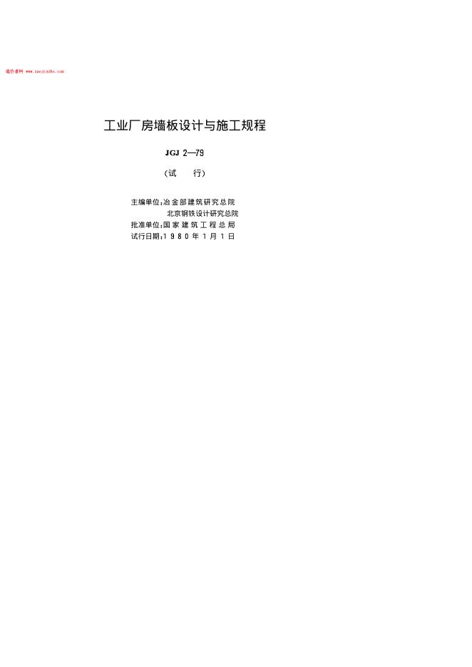 JGJ 2-1979 工业厂房墙板设计与施工规程(附条文说明)