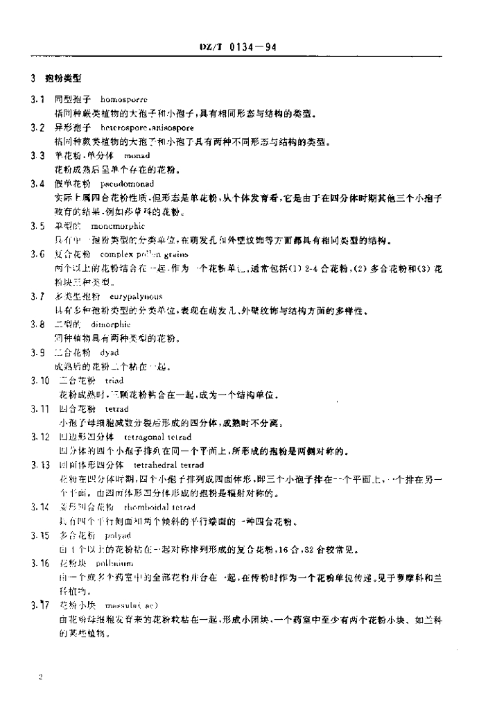 DZ/T 0134-1994 孢粉学术语