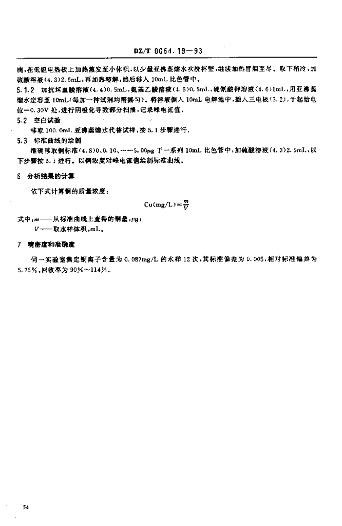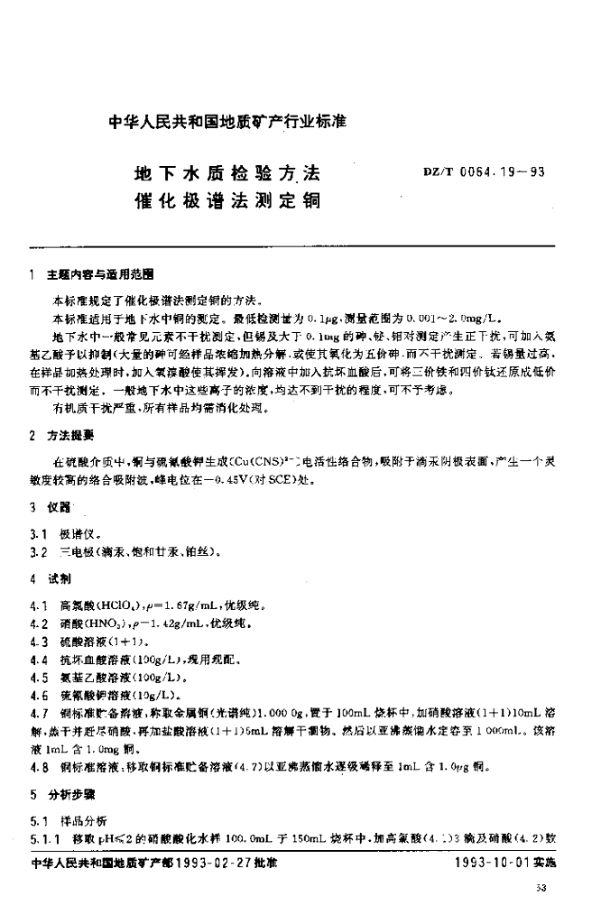 DZ/T 0064.19-1993 地下水质检验方法催化极谱法测定铜