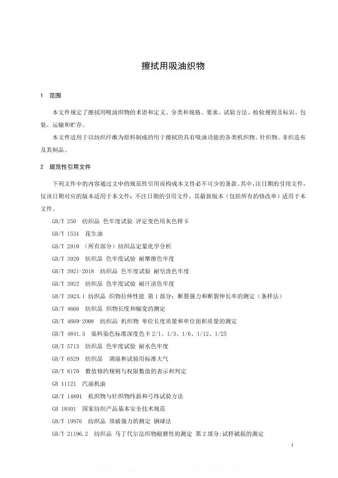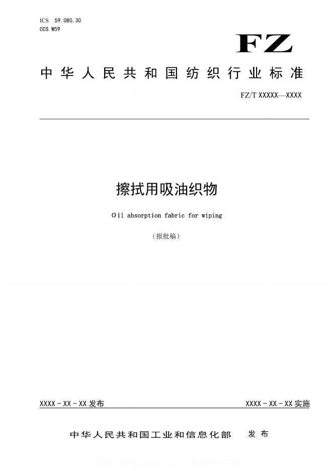 FZ/T 64098-2023 擦拭用吸油织物