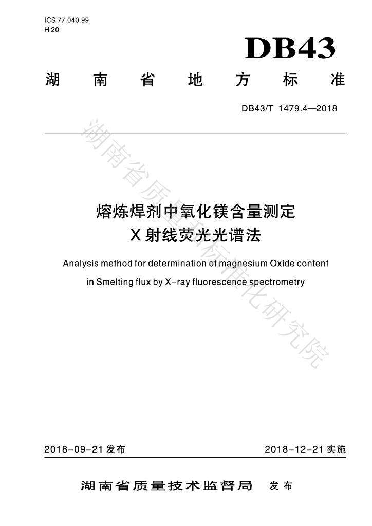 DB43/T 1479.4-2018 熔炼焊剂中氧化镁含量测定 X射线荧光光谱法