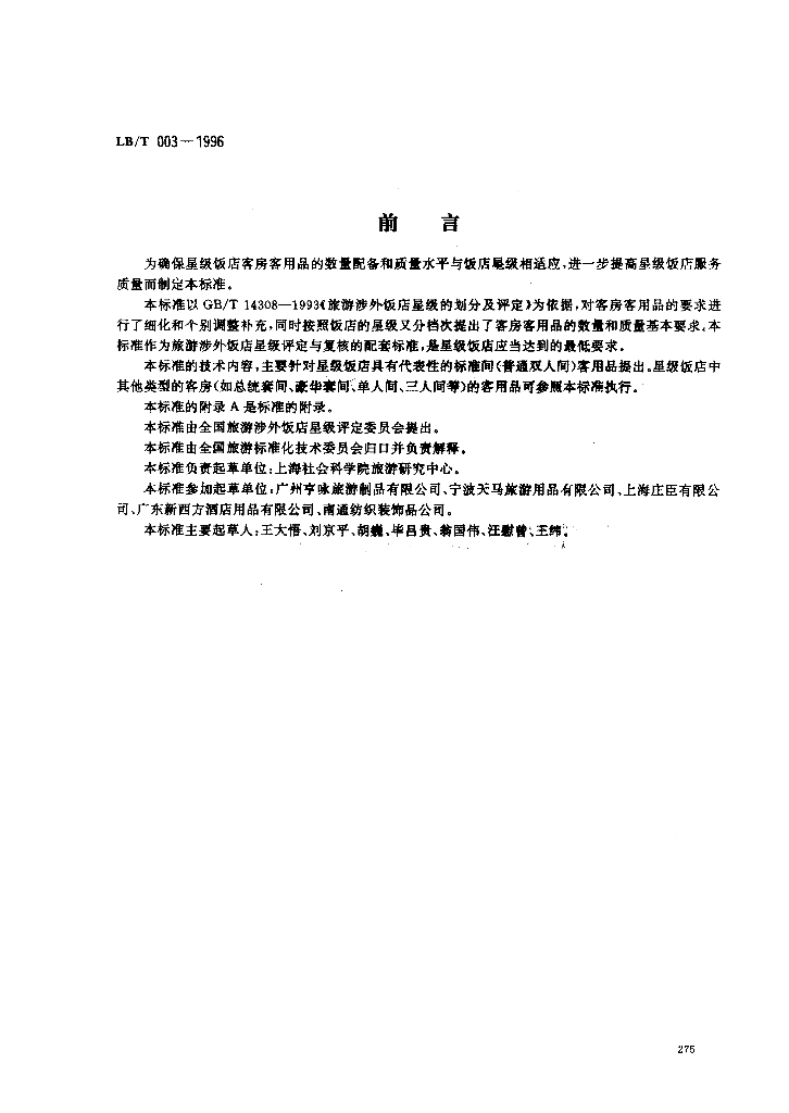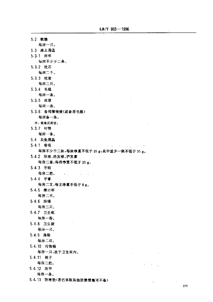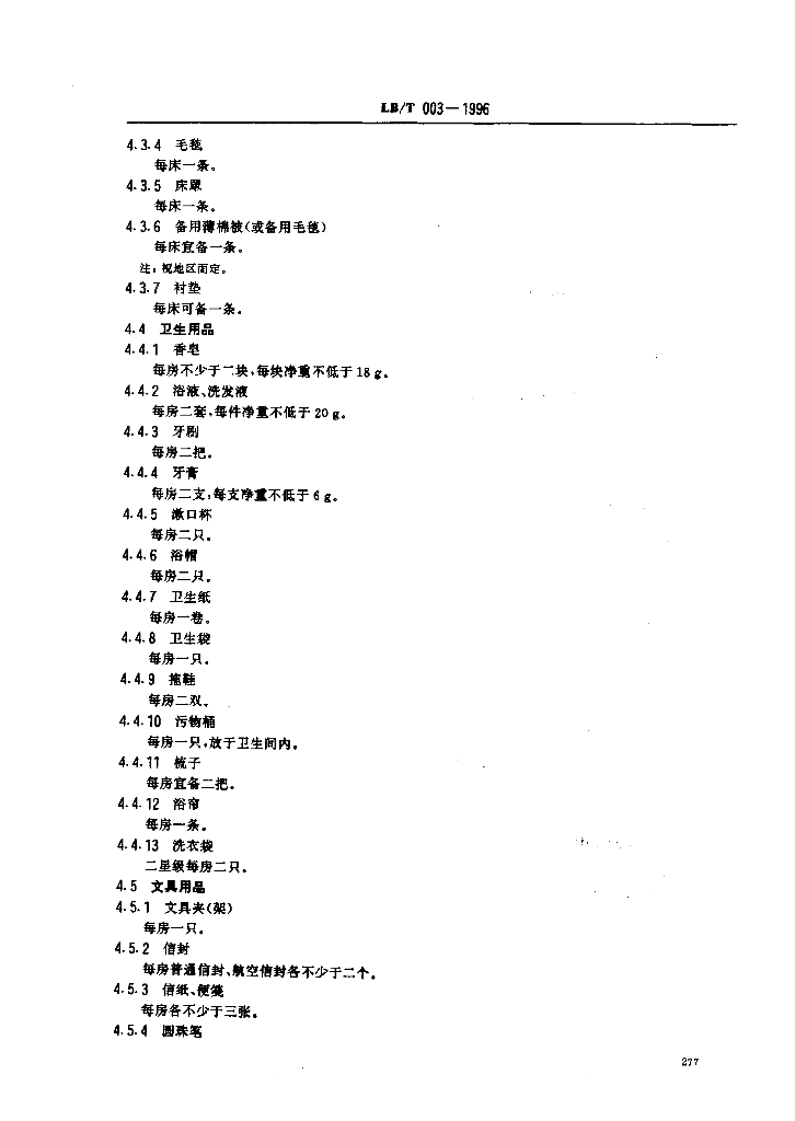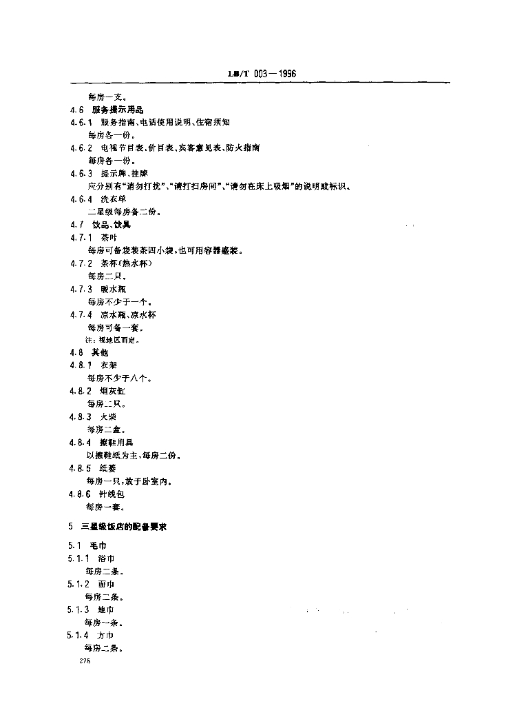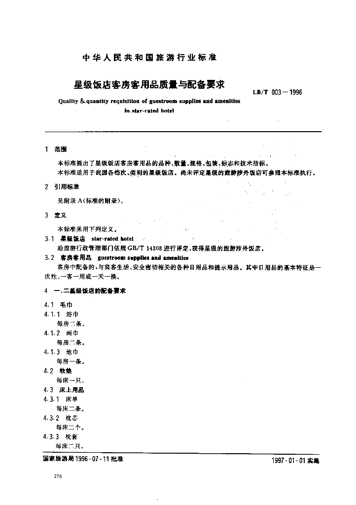 LB/T 003-1996 星级饭店客房客用品质量与配备要求