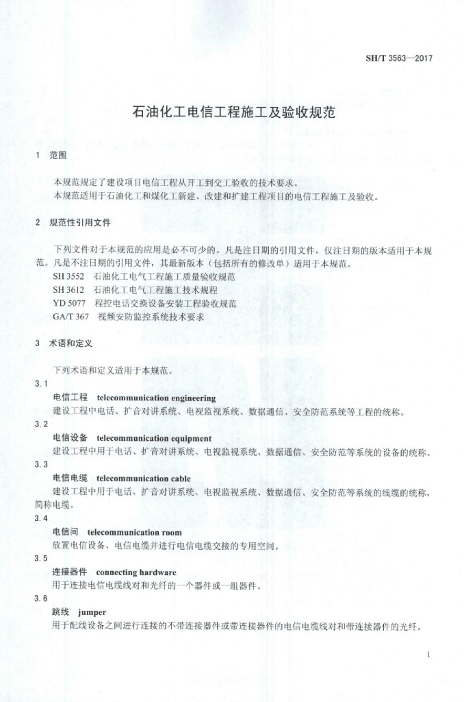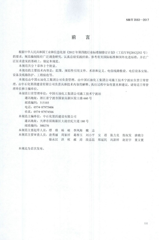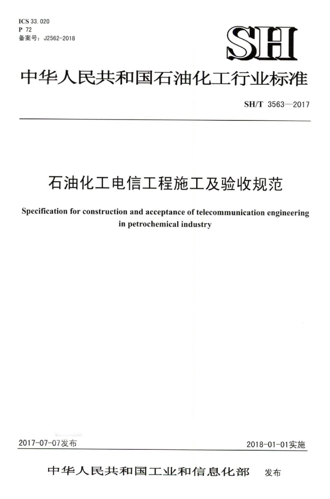 SH/T 3563-2017 石油化工电信工程施工及验收规范
