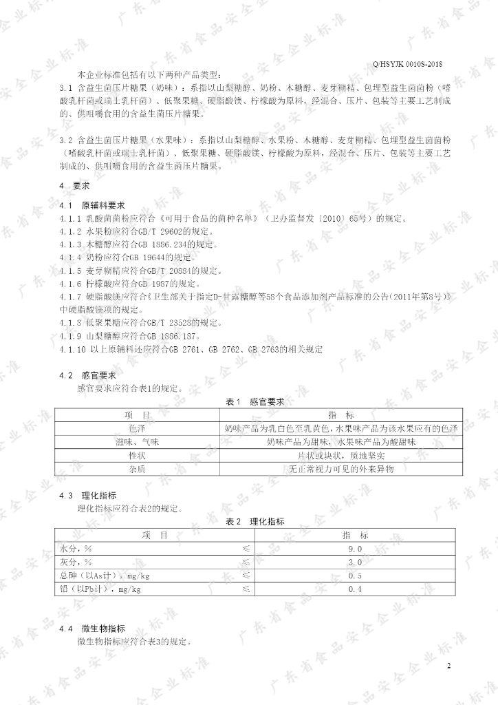 Q/HSYJK 0010S-2018 含益生菌压片糖果
