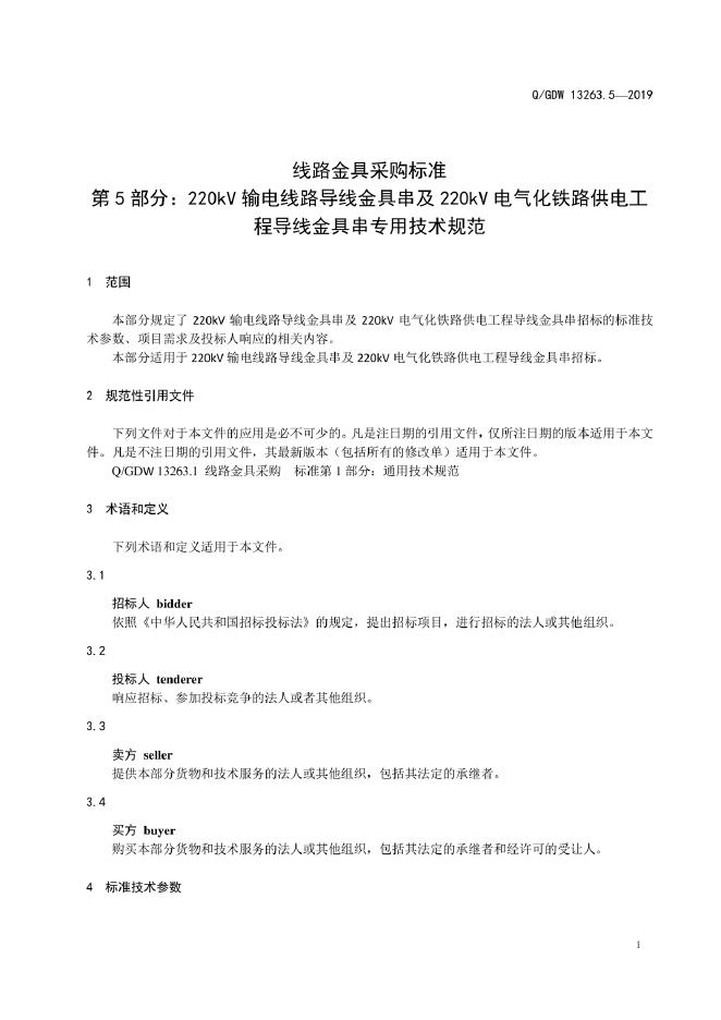 Q/GDW 13263.5-2019 线路金具采购标准 第5部分:220kV输电线路导线金具串及220kV电气化铁路供电工程导线金具串专用技术规范