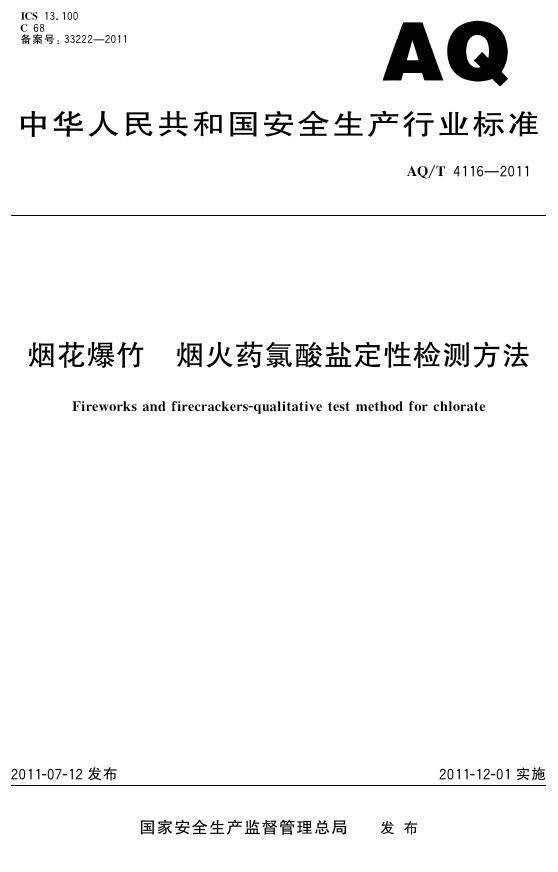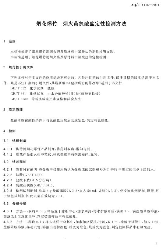 AQ/T 4116-2011 烟花爆竹 烟火药氯酸盐定性检测方法