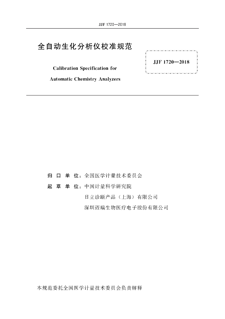 谢宝民(中国计量科学研究院)、武利庆(中国计量科学研究院)、程清(日立诊断产品(上海)有限公司)、解传芬(深圳迈瑞生物医疗电子股份有限公司)