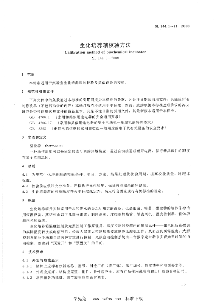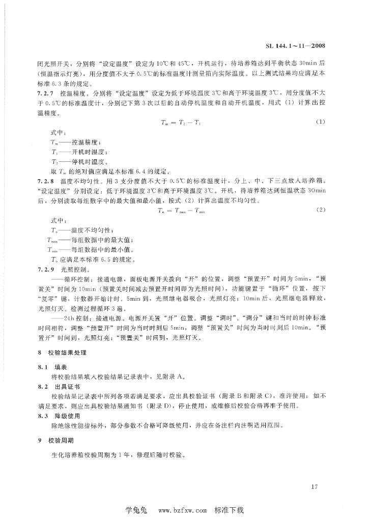 SL 144.3-2008 生化培养箱校验方法
