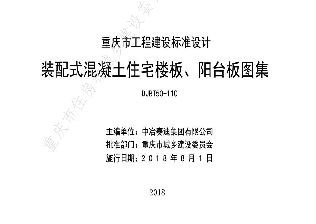 渝18J05 装配式混凝土住宅楼板、阳台板图集(DJBT50-110)