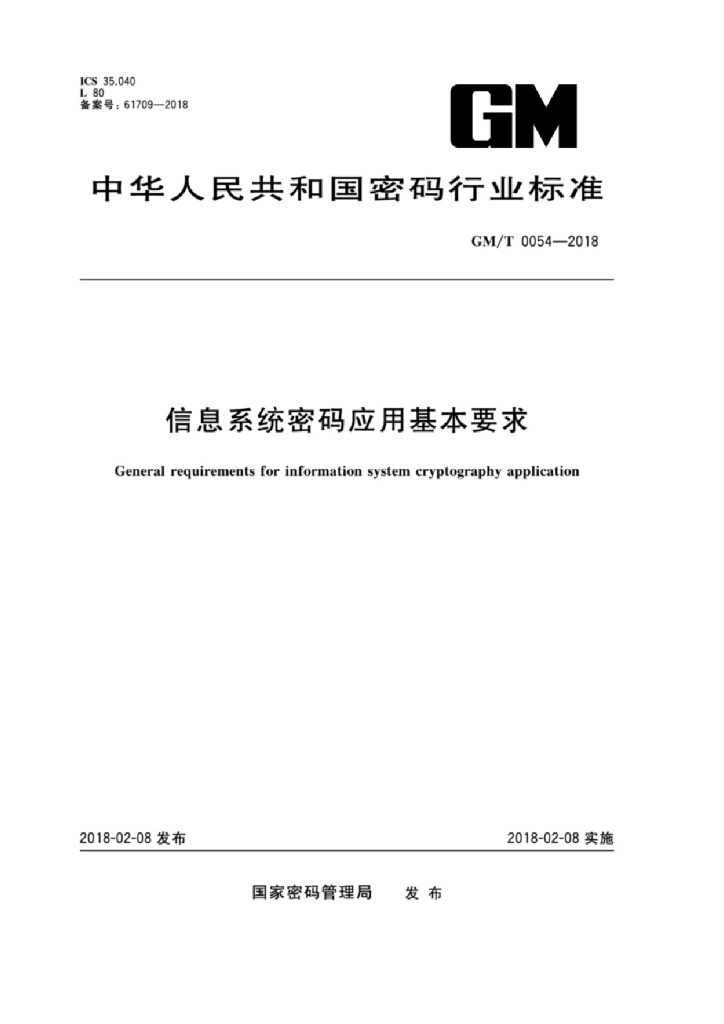 GM/T 0054-2018 信息系统密码应用基本要求