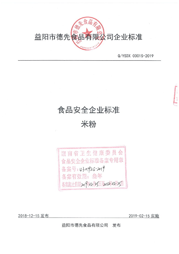 Q/YSDX 0001S-2019 米粉