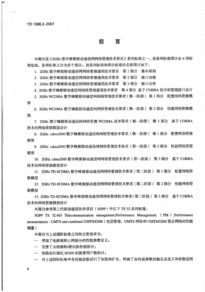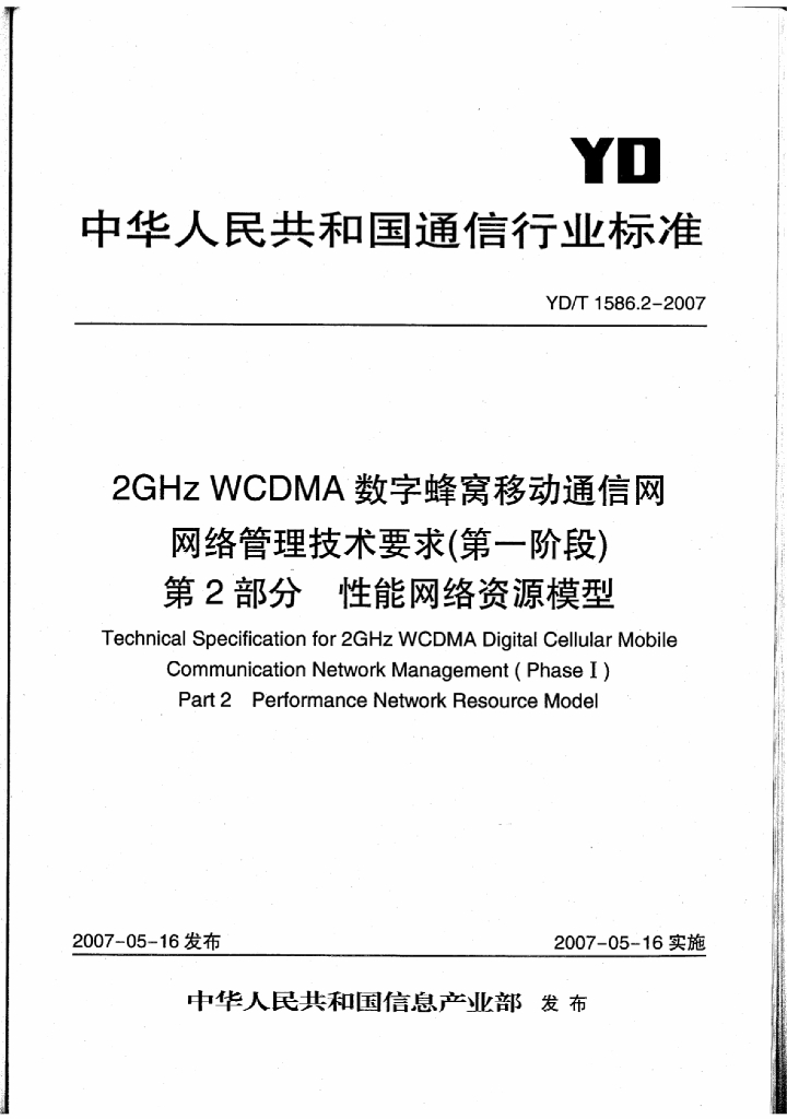 YD/T 1586.2-2007 2GHz WCDMA 数字蜂窝移动通信网网络管理技术要求(第一阶段) 第2部分:性能网络资源模型