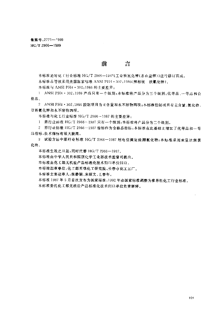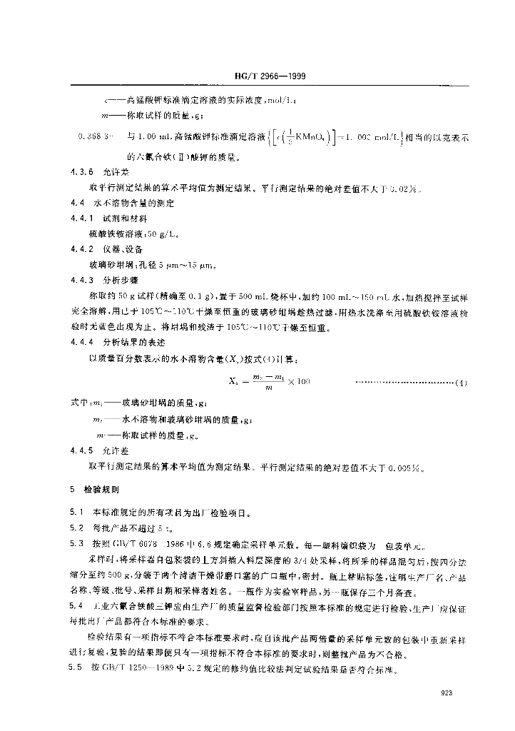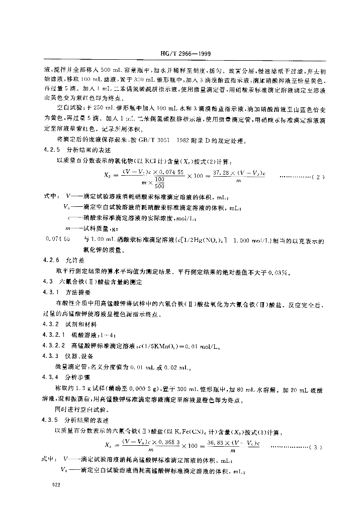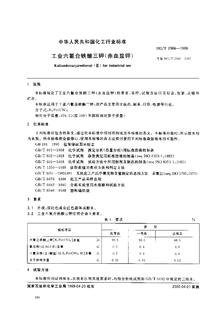 HG/T 2966-1999 工业六氰合铁酸三钾(赤血盐钾)