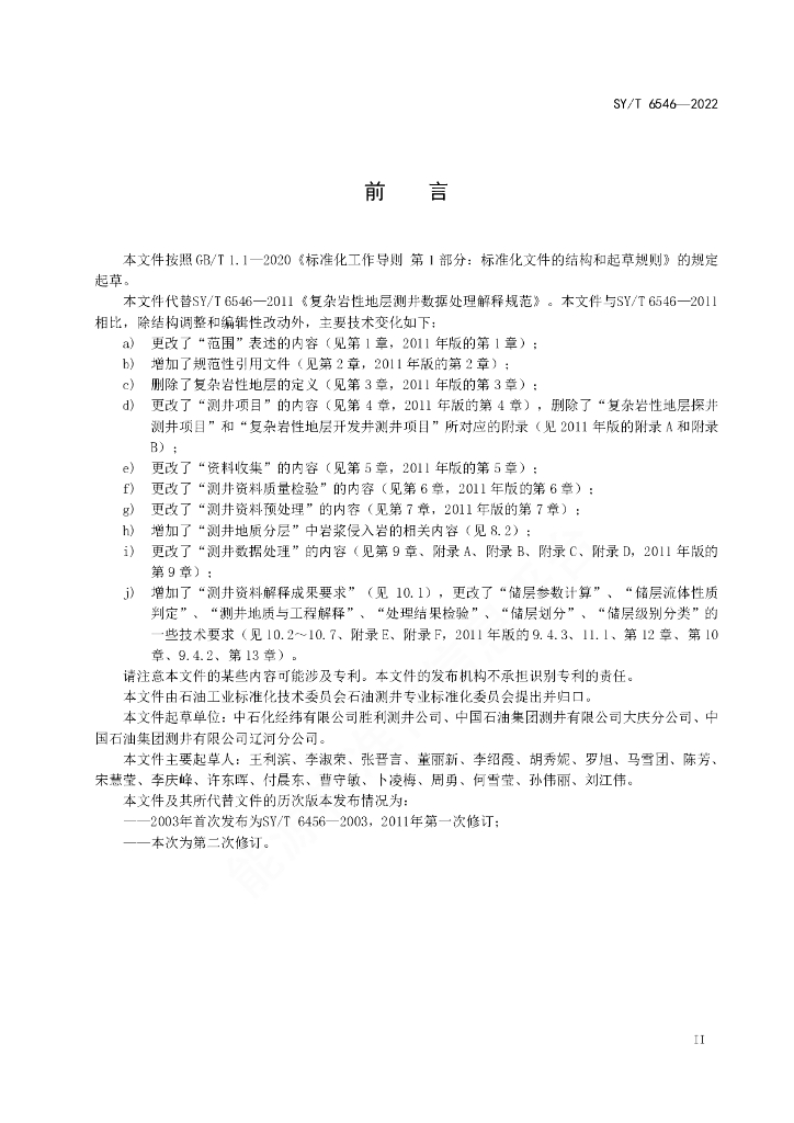 - 提出单位:石油工业标准化技术委员会石油测井专业标准化委员会