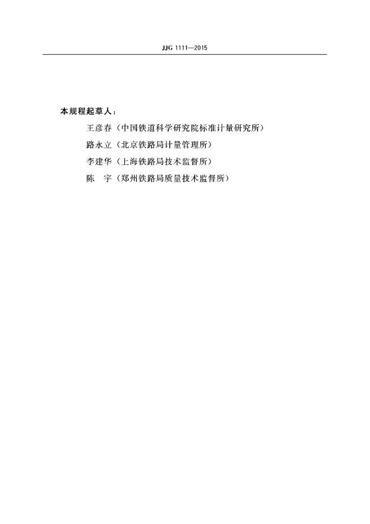 王彦春(中国铁道科学研究院标准计量研究所)、路永立(北京铁路局计量管理所)、李建华(上海铁路局技术监督所)、陈宇(郑州铁路局质量技术监督所)