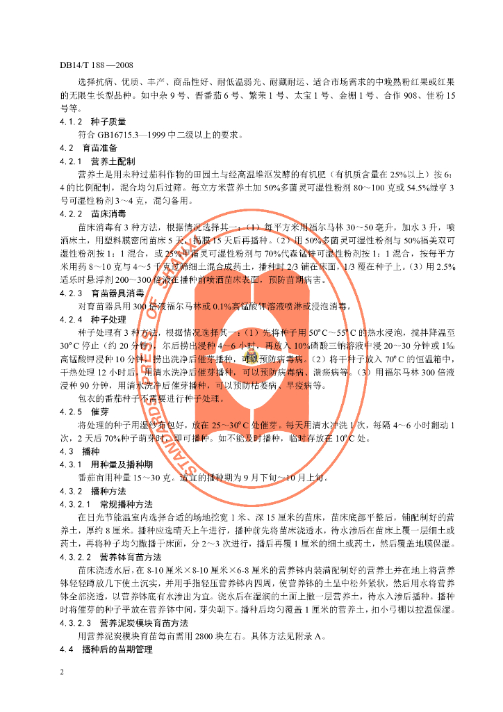 DB14/T 188-2008 绿色食品 日光节能温室越冬茬番茄生产技术规程