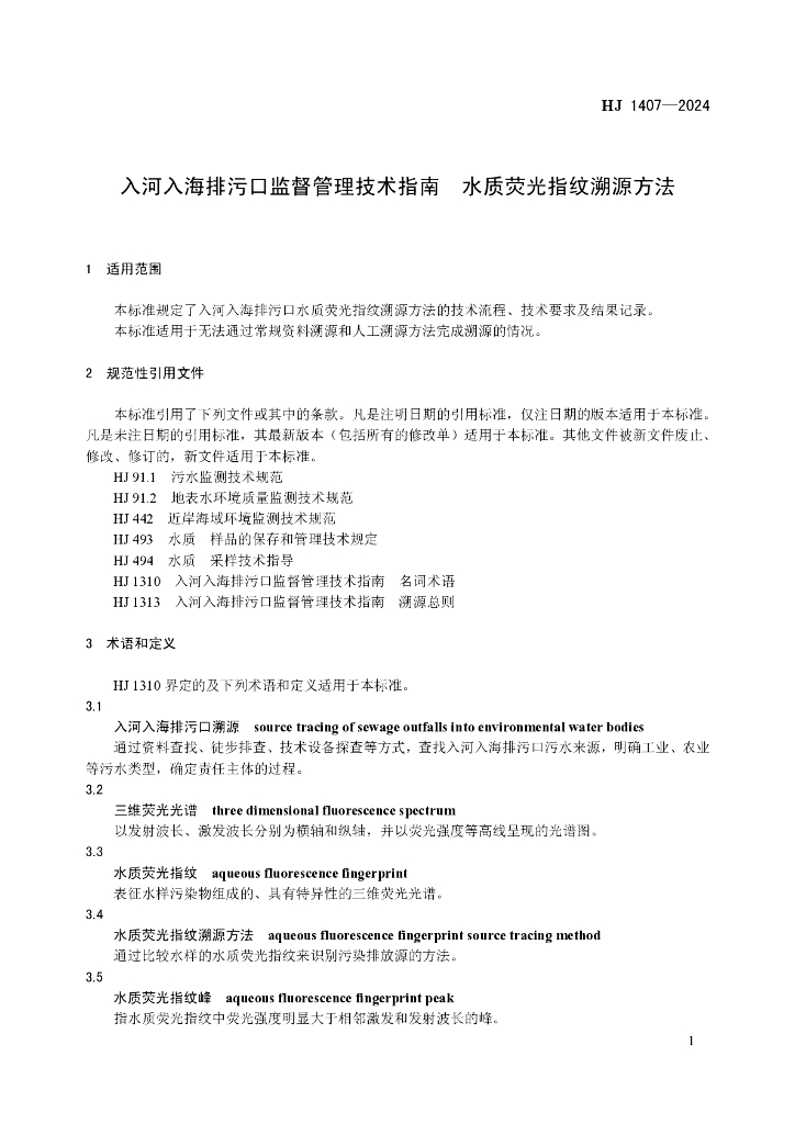 HJ 1407-2024 入河入海排污口监督管理技术指南 水质荧光指纹溯源方法