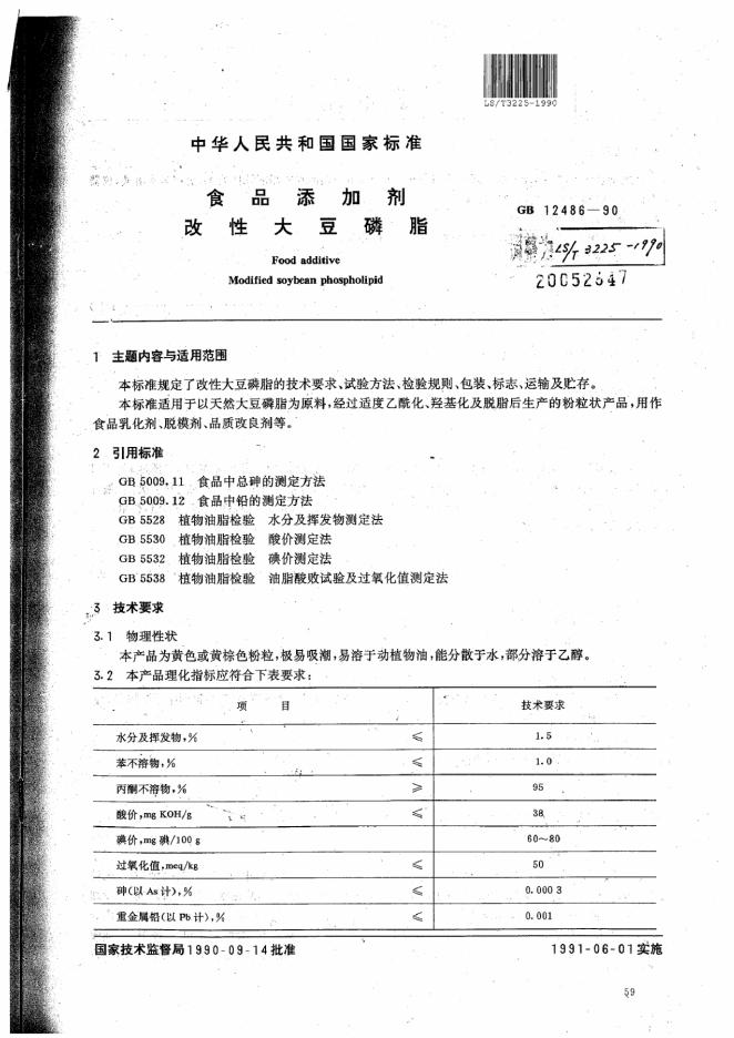 LS/T 3225-1990 食品添加剂 改性大豆磷脂