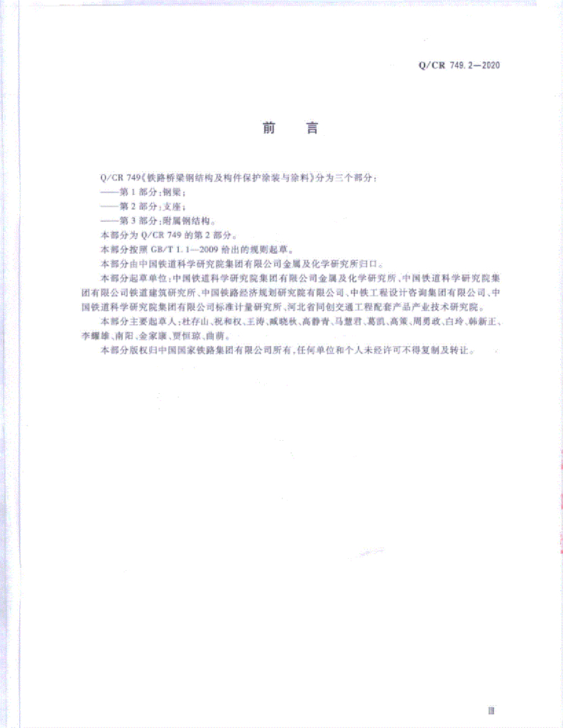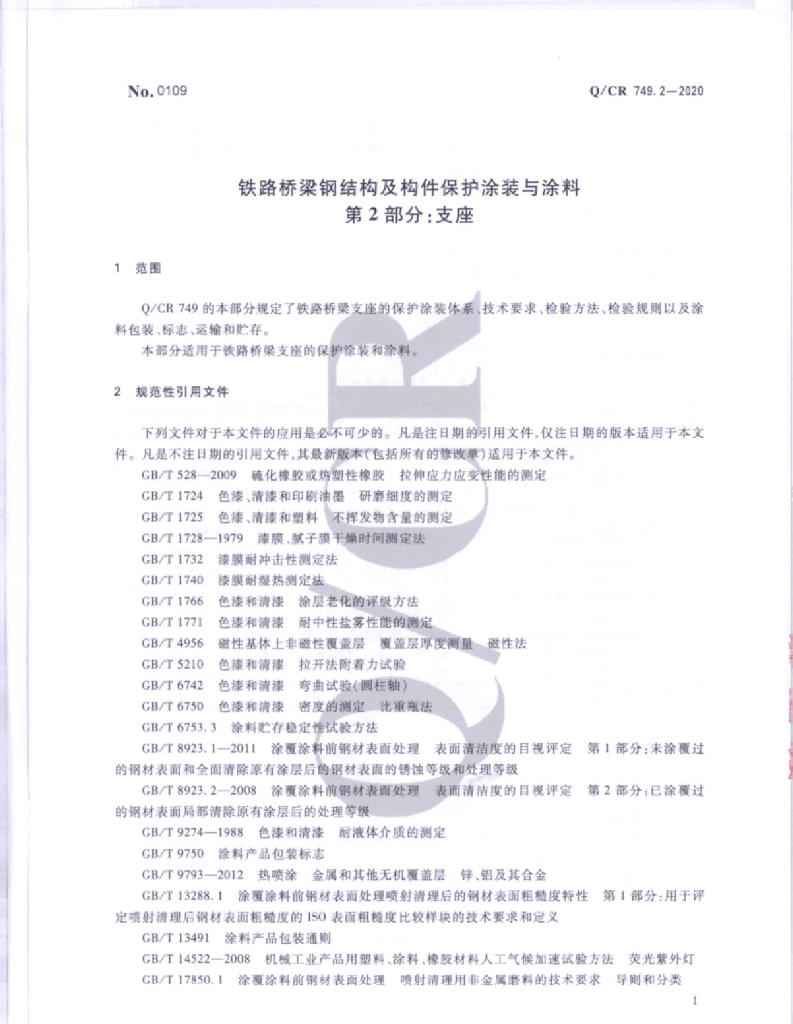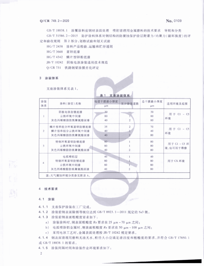 Q/CR 749.2-2020 铁路桥梁钢结构及构件保护涂装与涂料 第2部分 支座