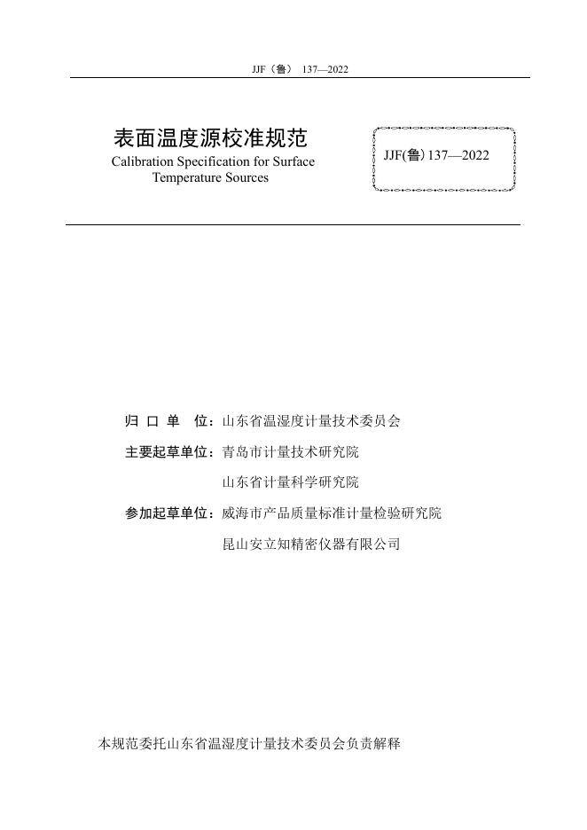 JJF(鲁)137-2022 表面温度源校准规范