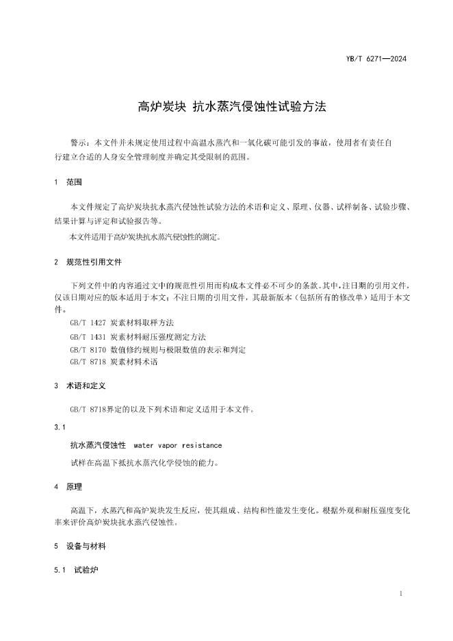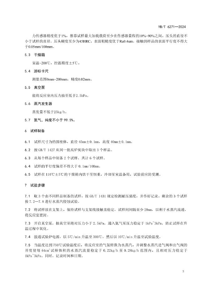 YB/T 6271-2024 高炉炭块抗水蒸汽侵蚀性试验方法