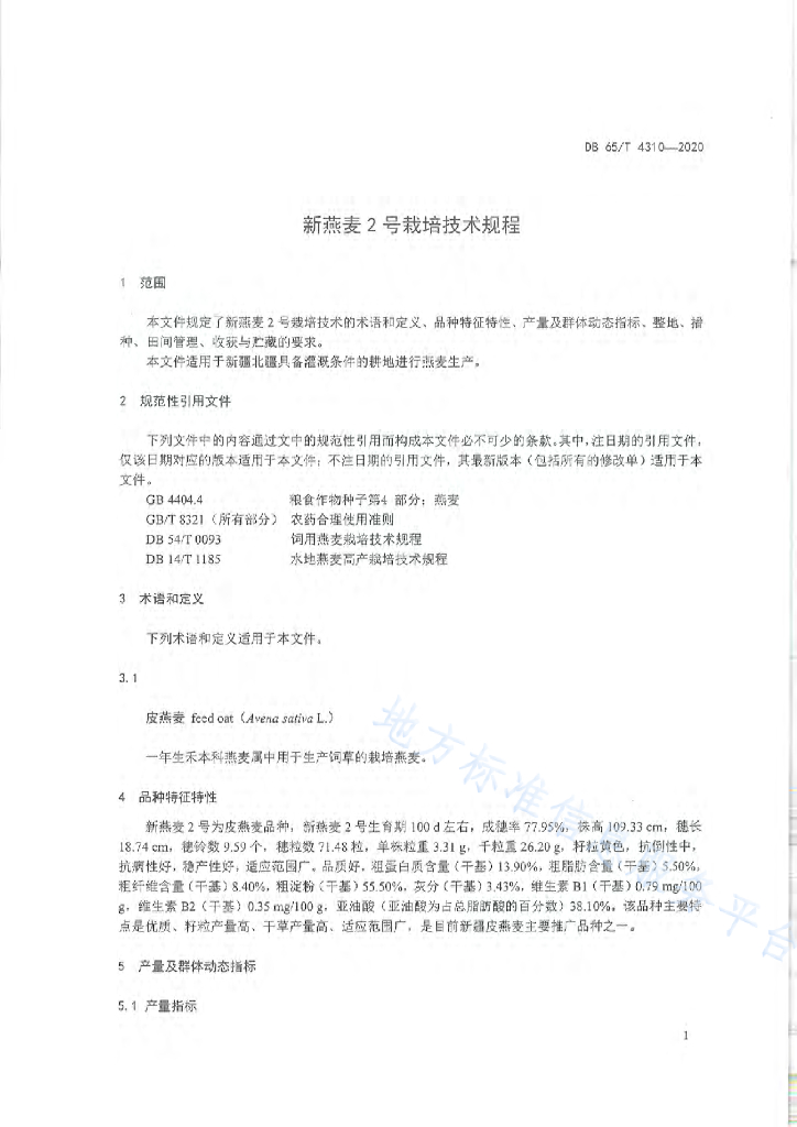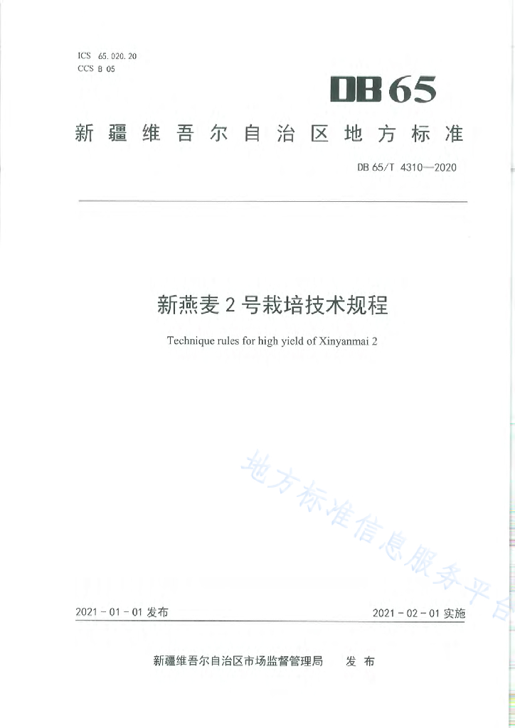 DB65/T 4310-2020 新燕麦2号栽培技术规程