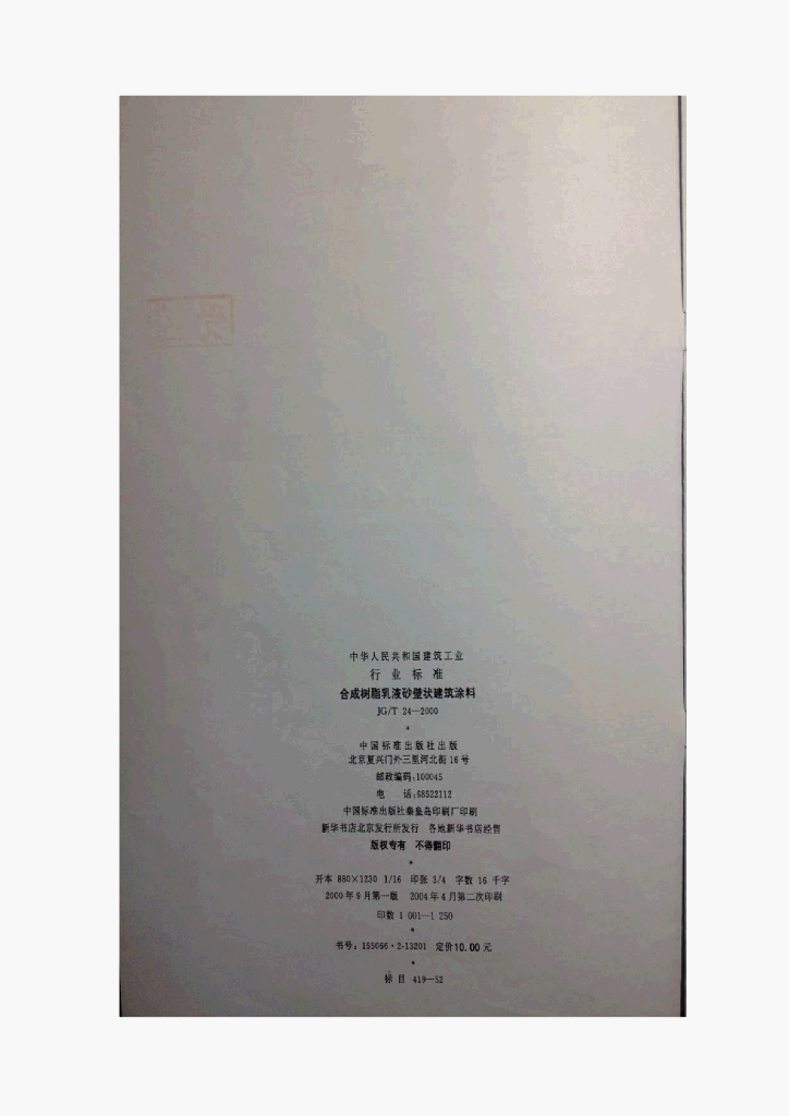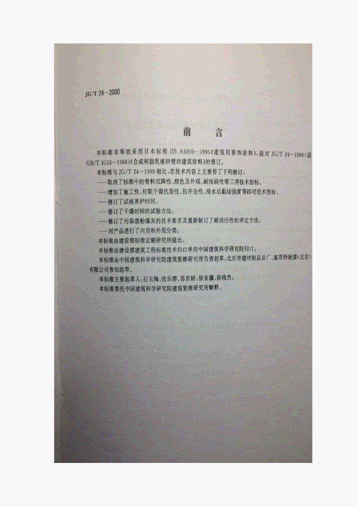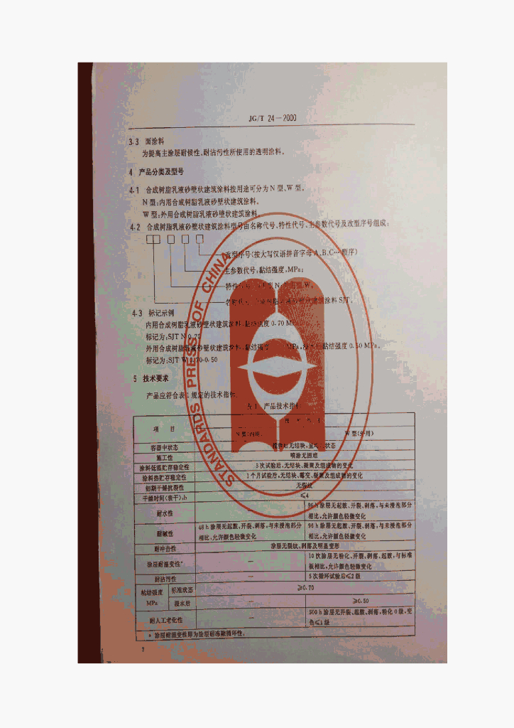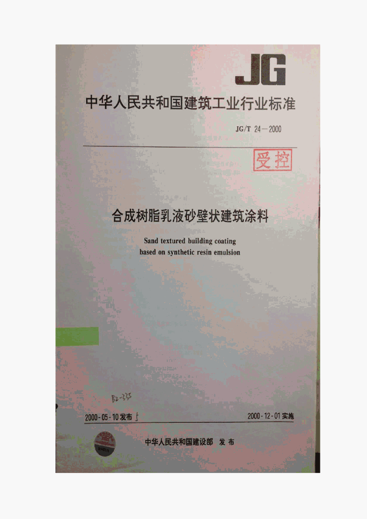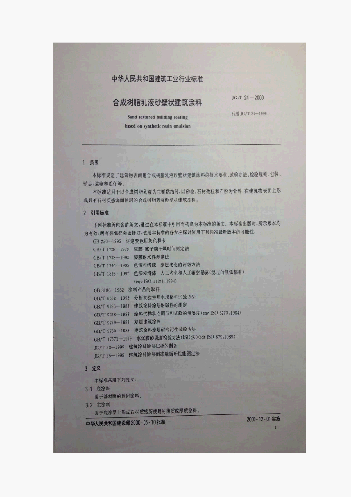 JG/T 24-2000 合成树脂乳液砂壁状建筑涂料