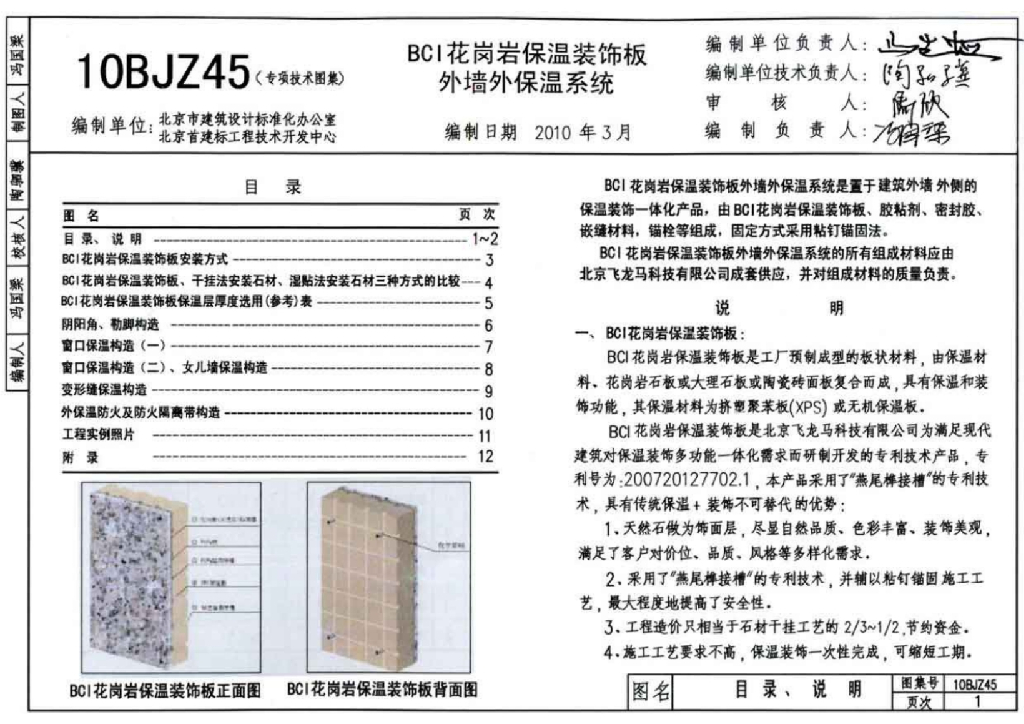 10BJZ45 BCI花岗岩保温装饰板外墙外保温系统图集