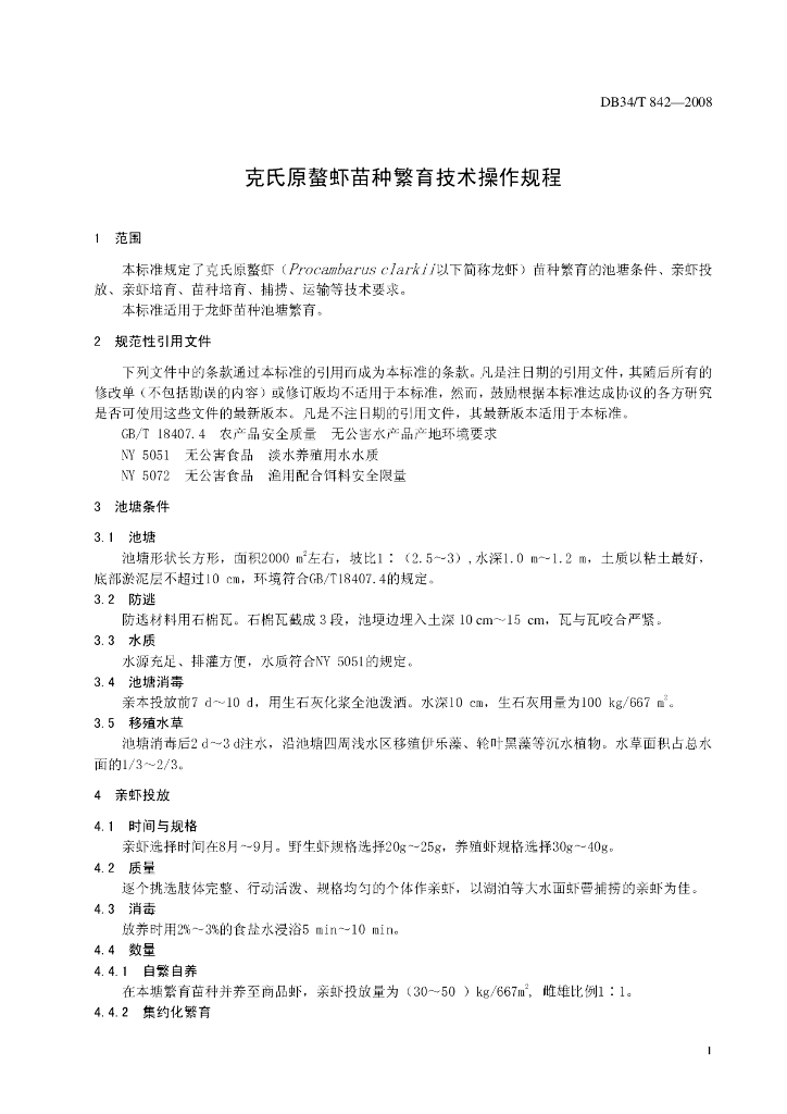 DB34/T 842-2008 克氏原螯虾苗种繁育技术操作规程