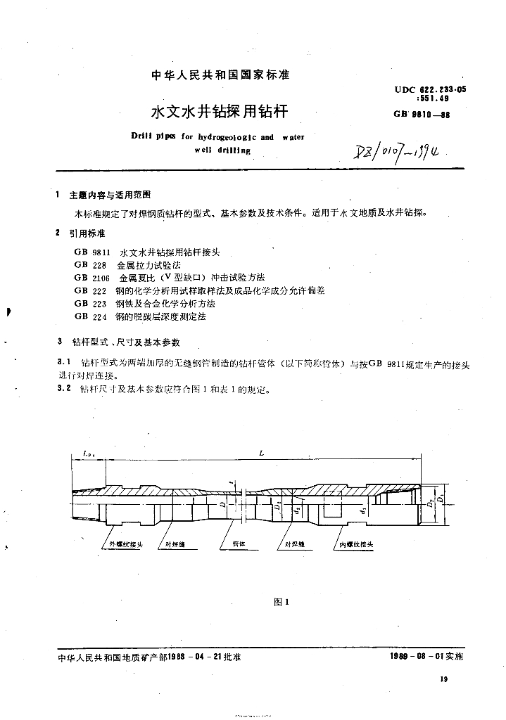 DZ/T 0107-1994 水文水井钻探用钻杆