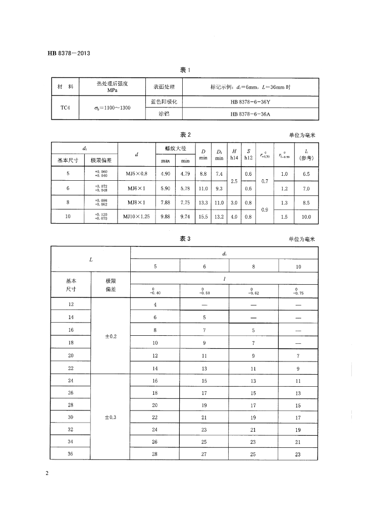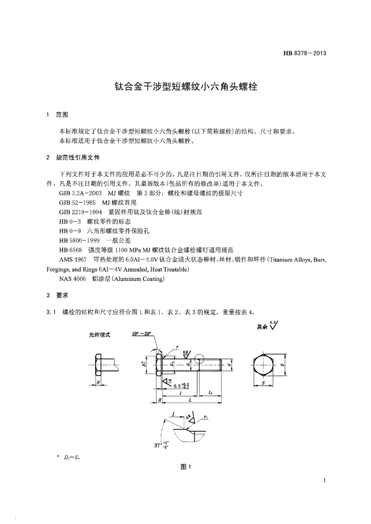 HB 8378-2013 钛合金干涉型短螺纹小六角头螺栓