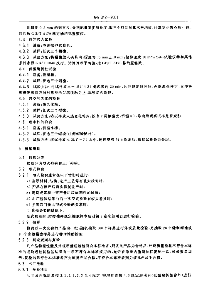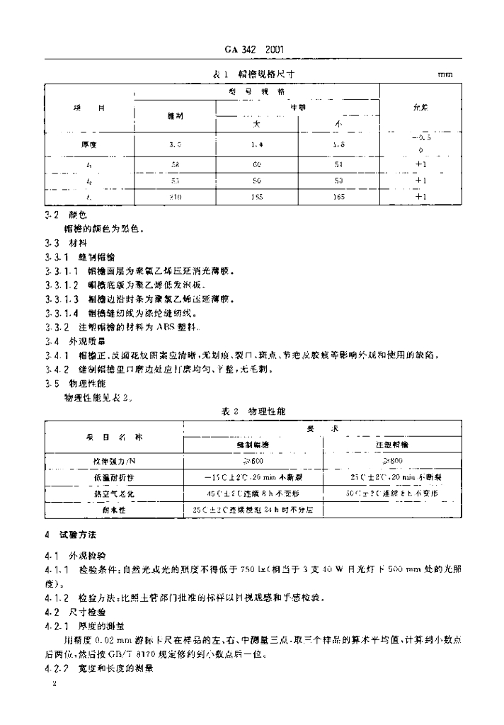 GA 342-2001 警服材料帽檐