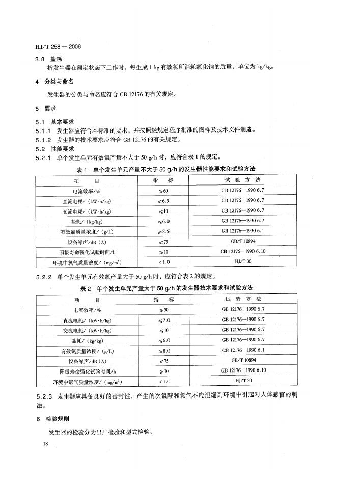 HJ/T 258-2006 环境保护产品技术要求 电解法次氯酸钠发生器