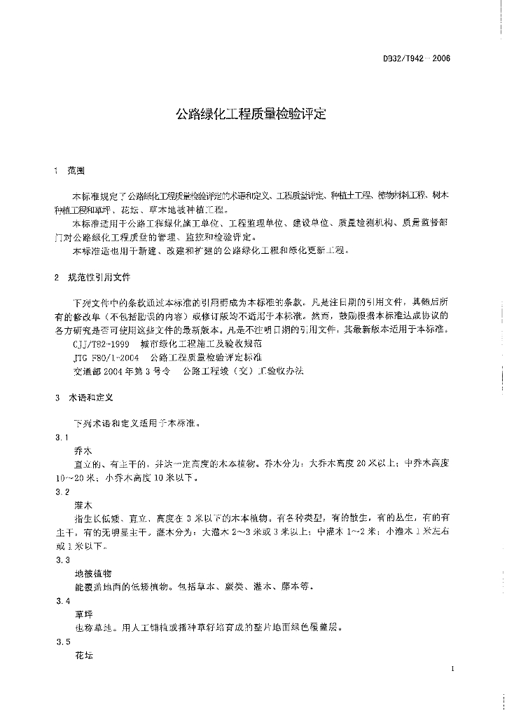 DB32/T 942-2006 公路绿化工程质量检验评定