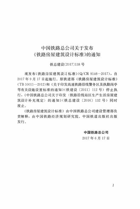 Q/CR 9146-2017 铁路房屋建筑设计标准