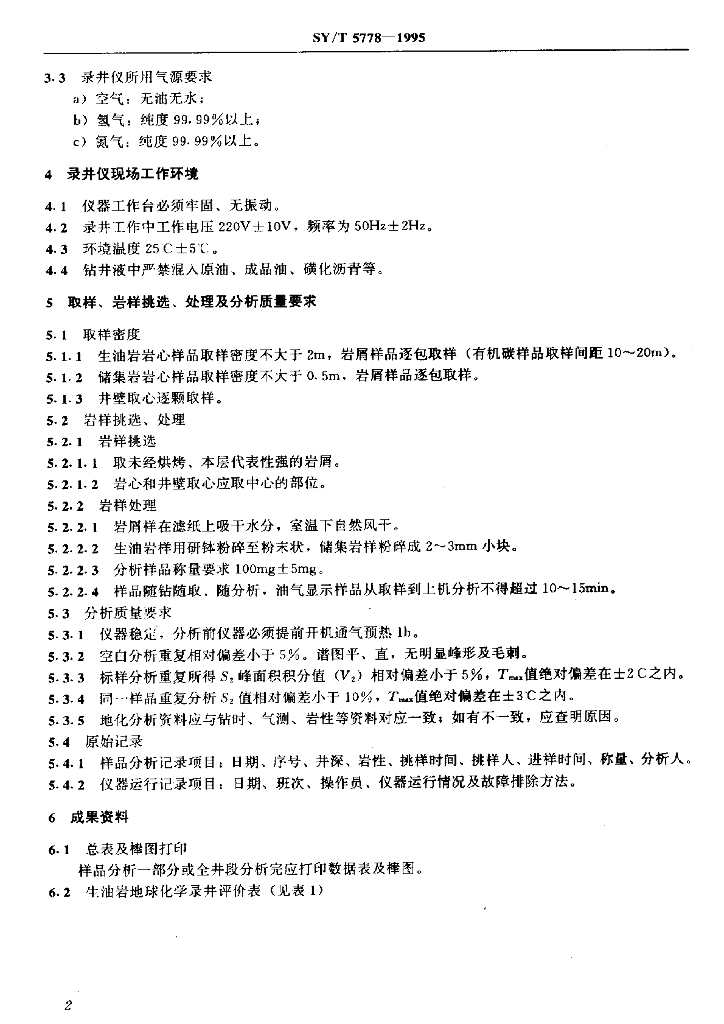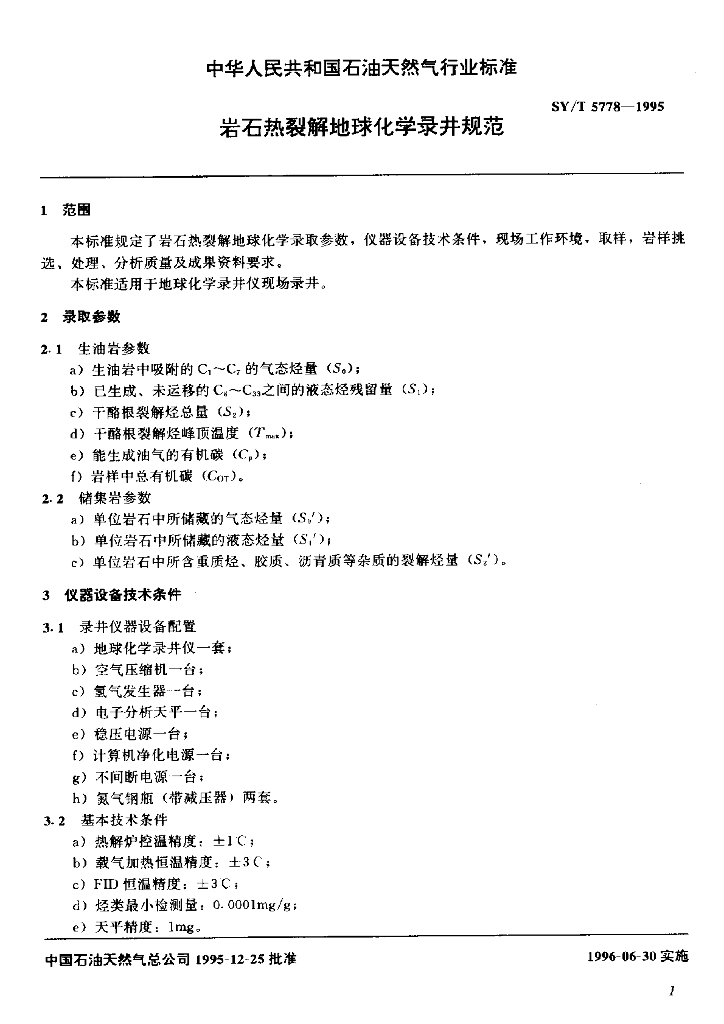 SY/T 5778-1995 岩石热裂解地球化学录井规范
