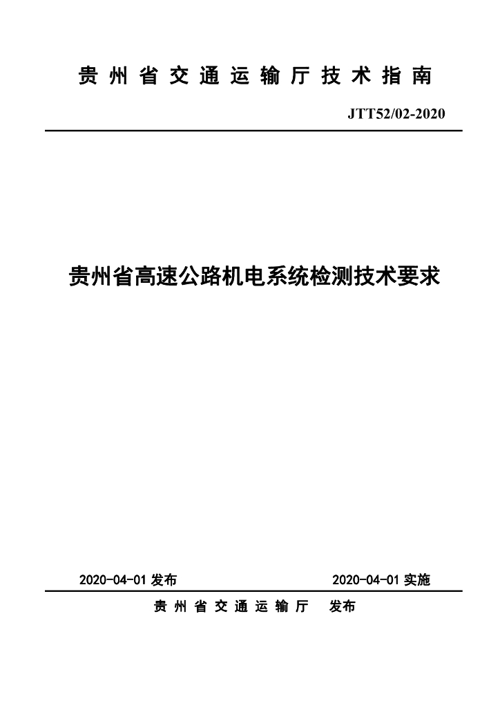 JTT 52/02-2020 贵州省高速公路机电系统检测技术要求
