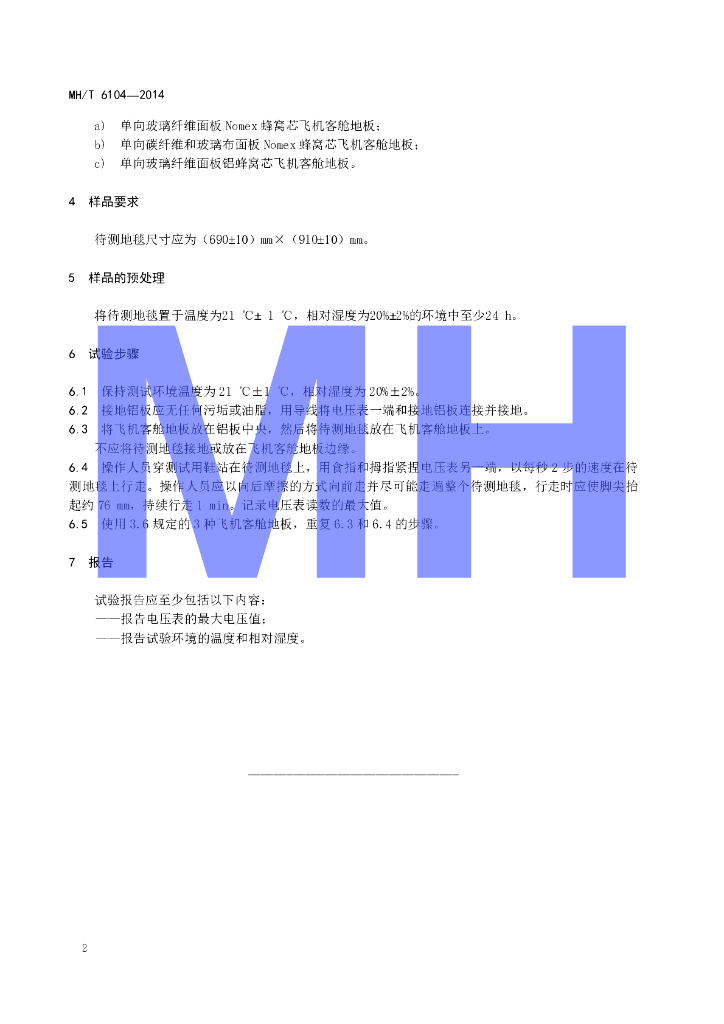 MH/T 6104-2014 航空地毯抗静电性能的试验方法
