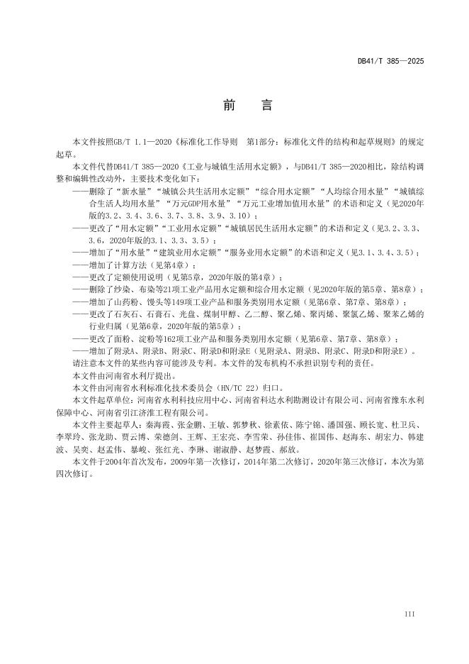 DB41/T 385-2025 工业与城镇生活用水定额