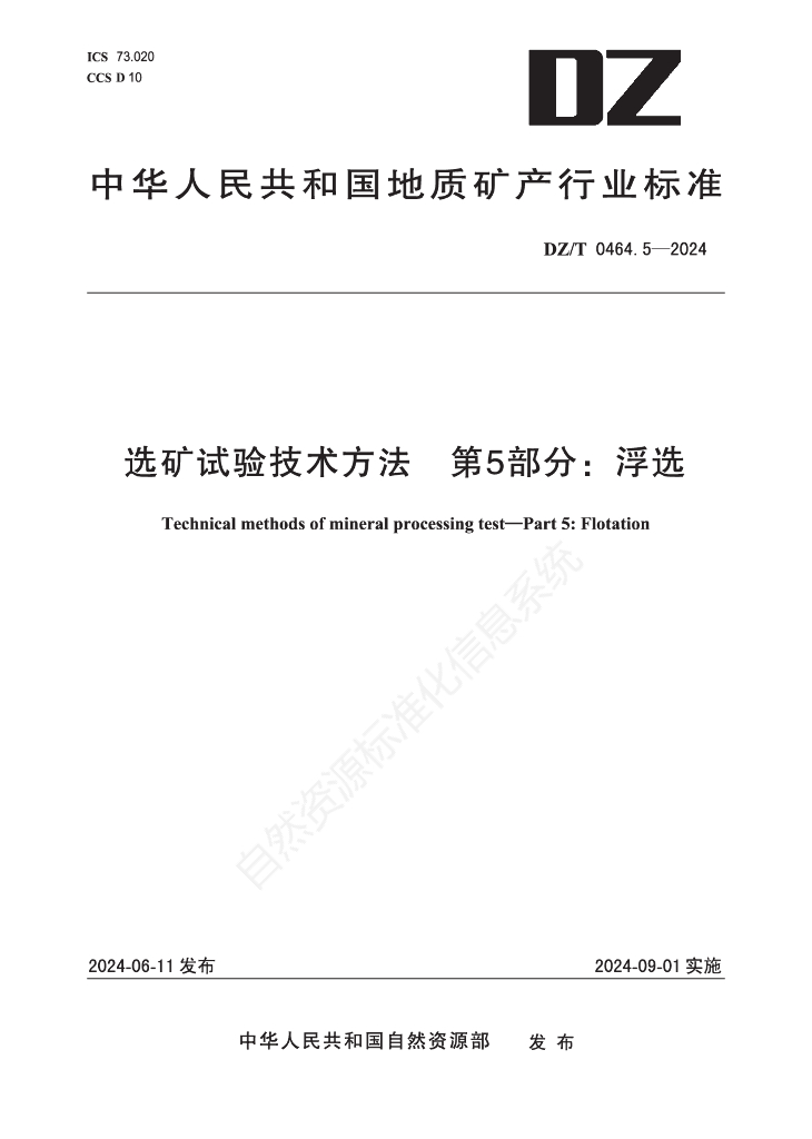 DZ/T 0464.5-2024 选矿试验技术方法 第5部分:浮选