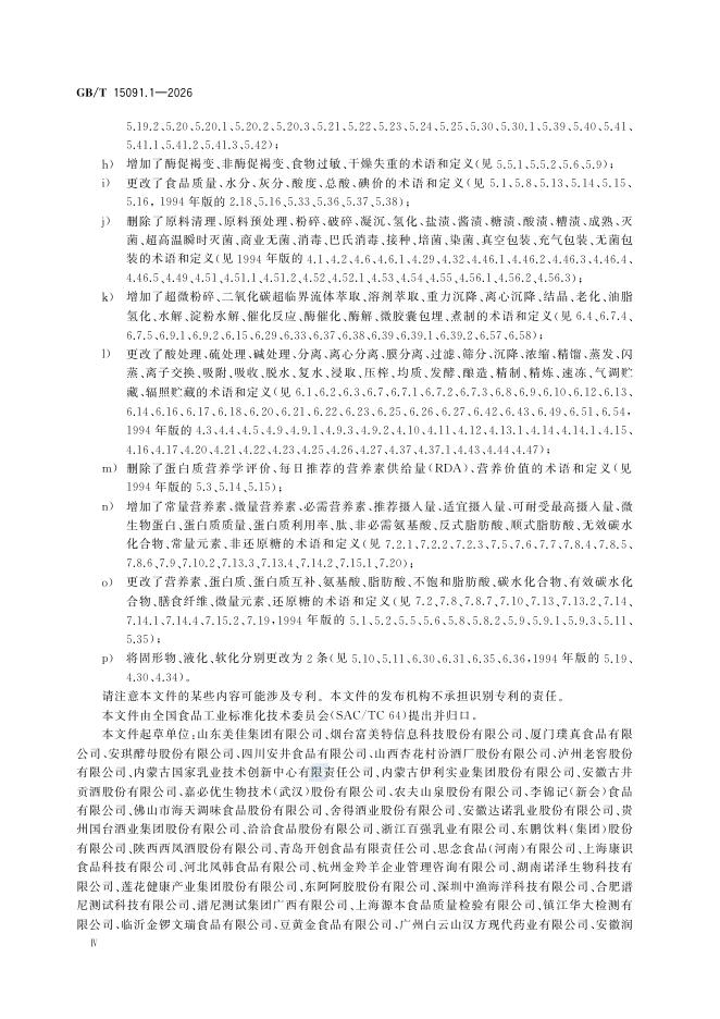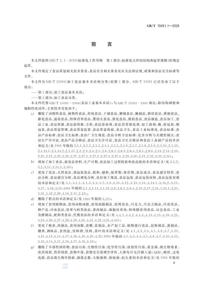 GB/T 15091.1-2026 加工食品基本术语和分类 第1部分:加工食品基本术语