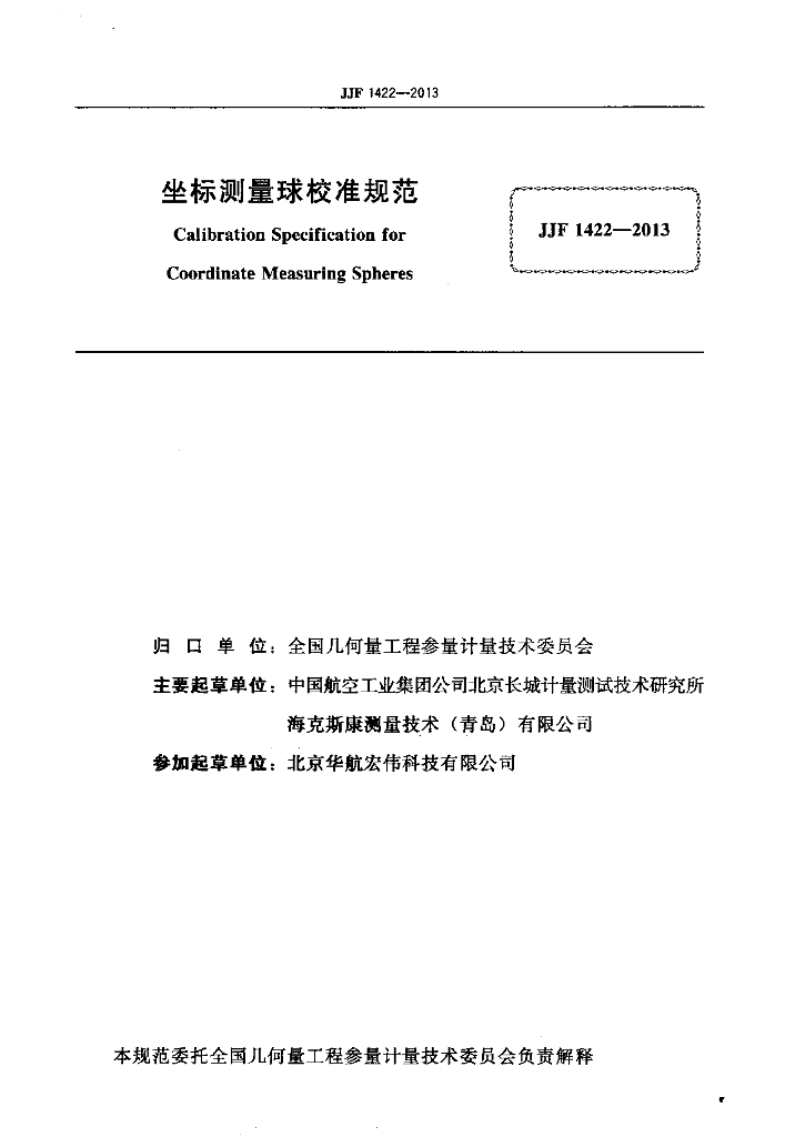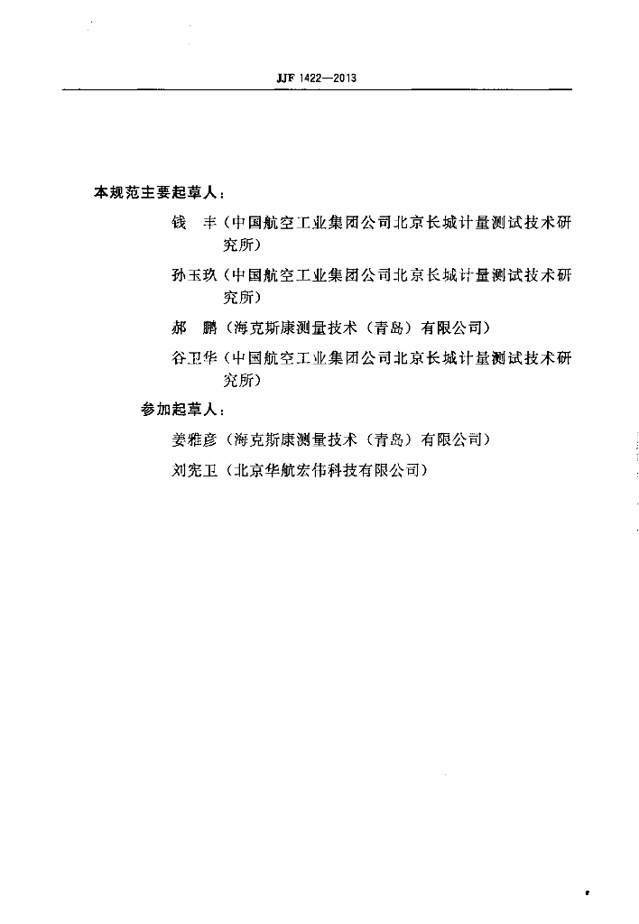 钱丰(中国航空工业集团公司北京长城计量测试技术研究所)、孙玉玖(中国航空工业集团公司北京长城计量测试技术研究所)、郝鹏(海克斯康测量技术(青岛)有限公司)、谷卫华(中国航空工业集团公司北京长城计量测试技术研究所)、姜雅彦(海克斯康测量技术(青岛)有限公司)、刘宪卫(北京华航宏伟科技有限公司)