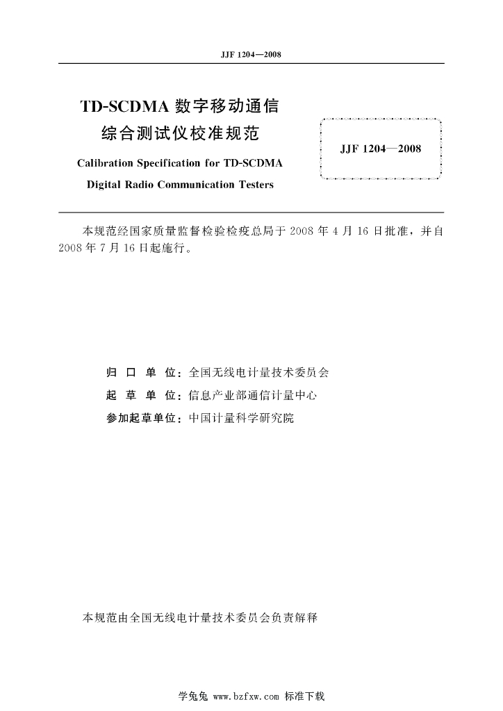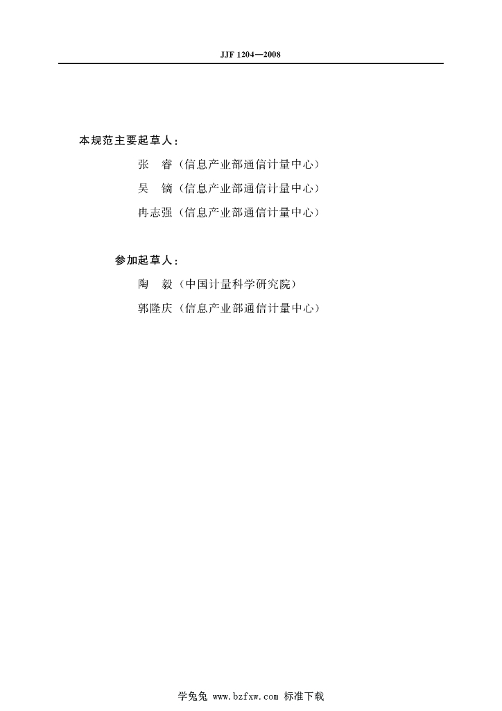 张睿(信息产业部通信计量中心)、吴镝(信息产业部通信计量中心)、冉志强(信息产业部通信计量中心)、陶毅(中国计量科学研究院)、郭隆庆(信息产业部通信计量中心)