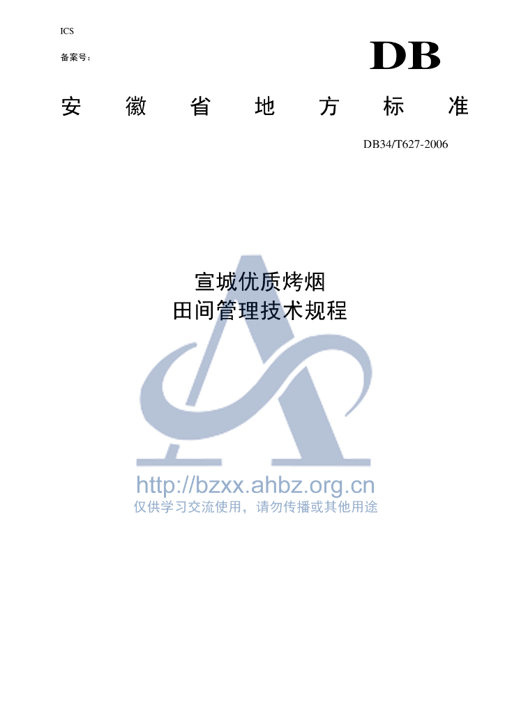 DB34/T 627-2006 宣城优质烤烟田间管理技术规程
