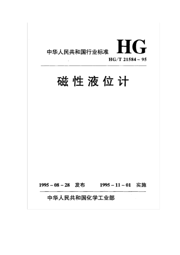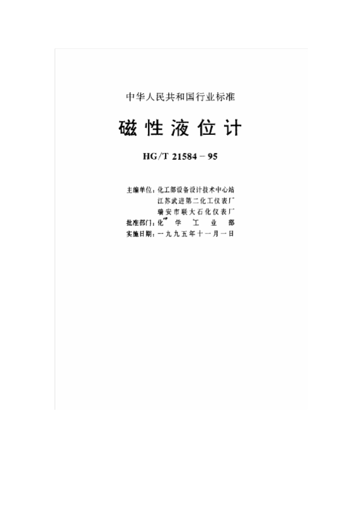 HG/T 21584-1995 磁性液位计