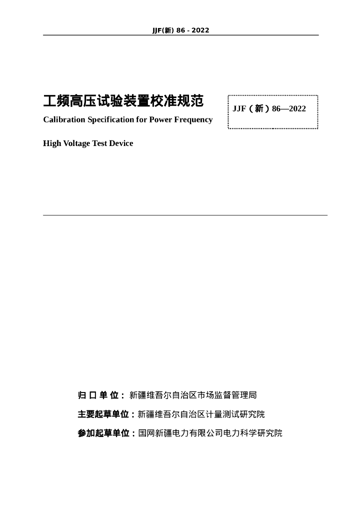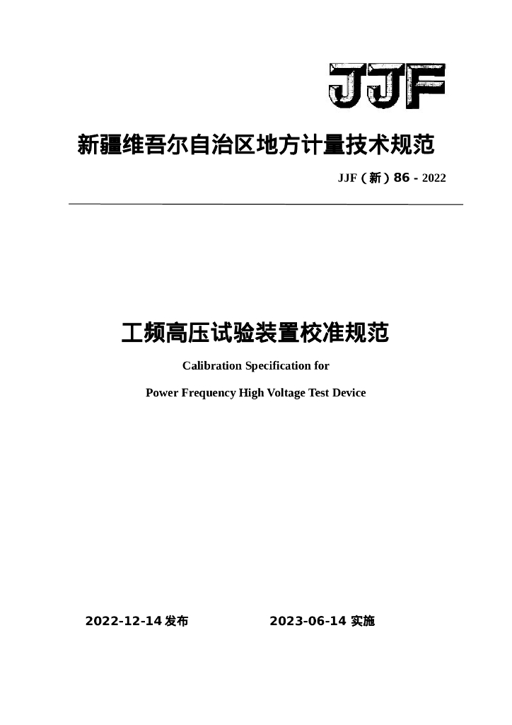 JJF(新)86-2022 工频高压试验装置校准规范